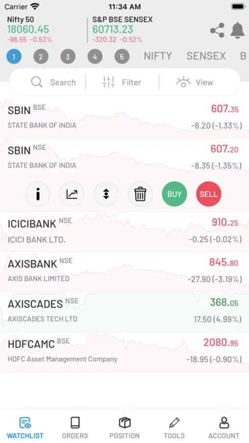 Watch markets closely with extensive sections for equity, stock derivatives along with detailed option chain & open interest analysis for F&O trading. Track, trade & Invest across stocks & manage your stock portfolio in a better way.