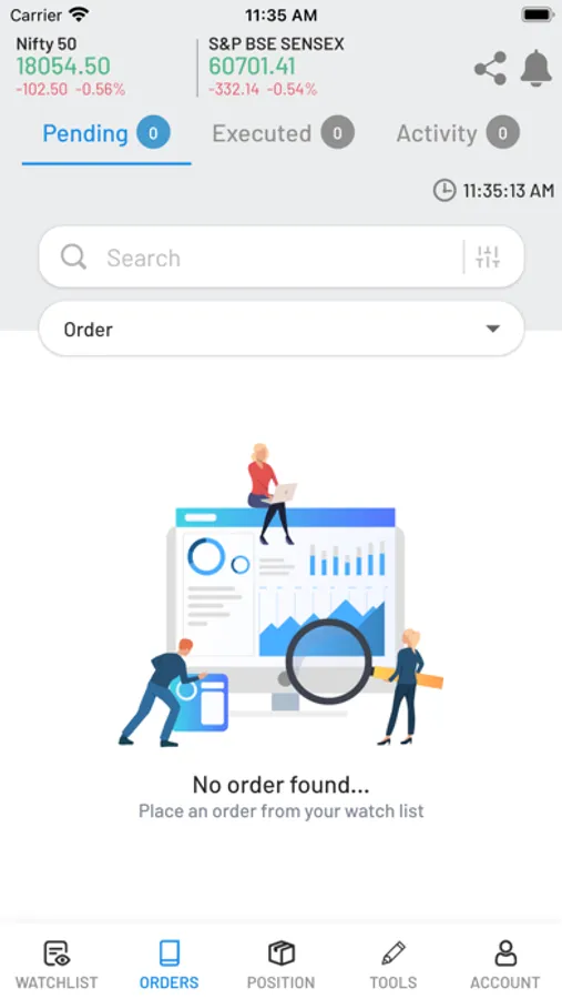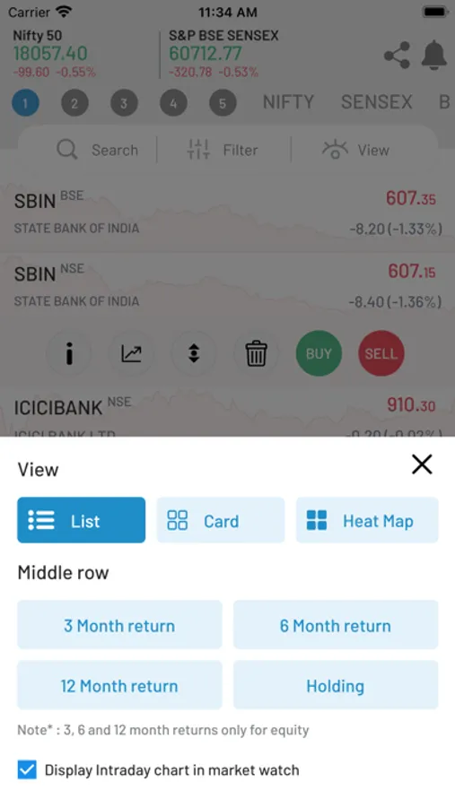 Customise you'r watchlist with a capacity of up to 100 stocks. Sort & save by change, change %, LTP & alphabetically & view the price-performance with a single tap