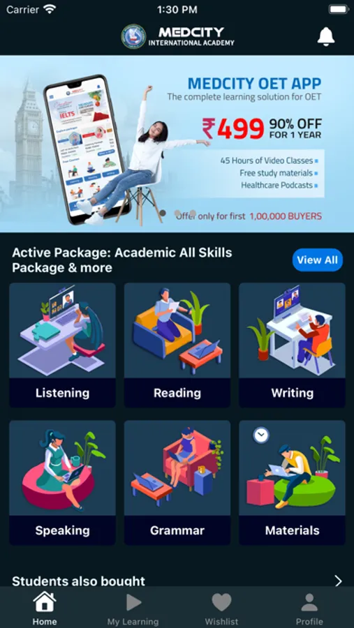 Medcity IELTS App is your answer to cracking the IELTS. This App deals with close to 70 hours of video lessons on all four skills- Listening, Reading, Writing and Speaking. You also have the option of choosing the IELTS Academic or IELTS General Training module. The packages in the IELTS App is created to ensure flexibility in the choice of study- IELTS All Skills pack will give you access to all four skills. You can also pick individual packs- IELTS Listening, IELTS Reading, IELTS Speaking and IELTS Grammar. This app has method lessons, strategies and tips to solve the IELTS test with sample answers to fall back on and even exhaustive question banks.