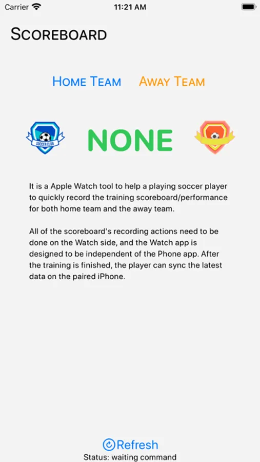 It is a Apple Watch tool to help a playing soccer player to quickly record the training scoreboard/performance for both home team and the away team.