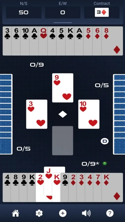 This game uses the Standard American bidding system. Hints can be provided during the bidding if you request them to keep your learning on track.