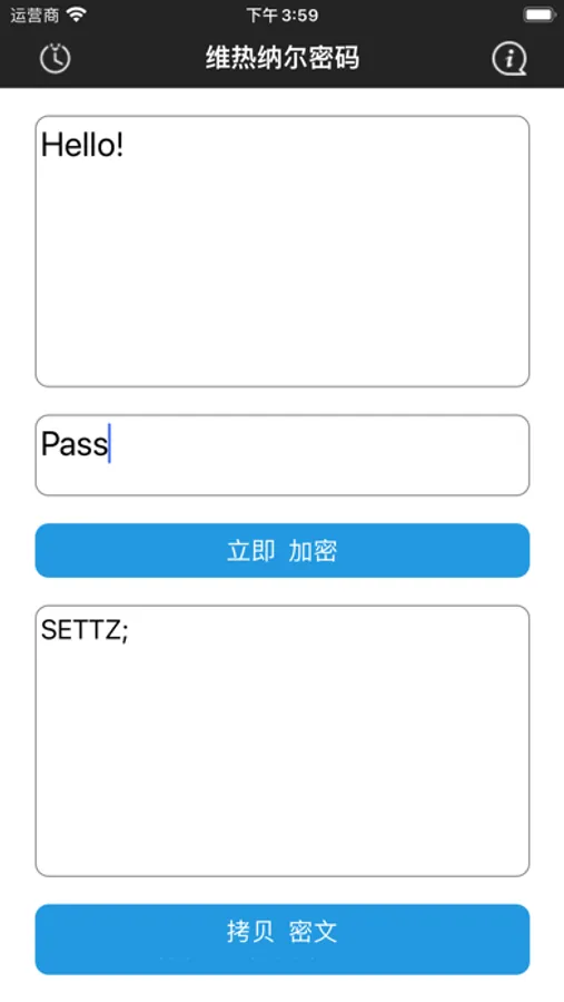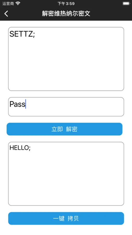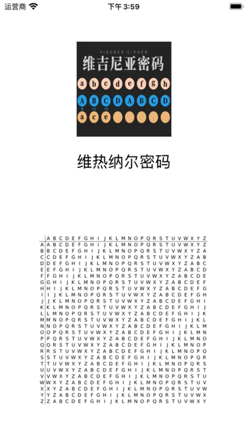 本APP可以体验【维热纳尔密码】加解密,更有一键拷贝分享好友等功能,快来体验吧。