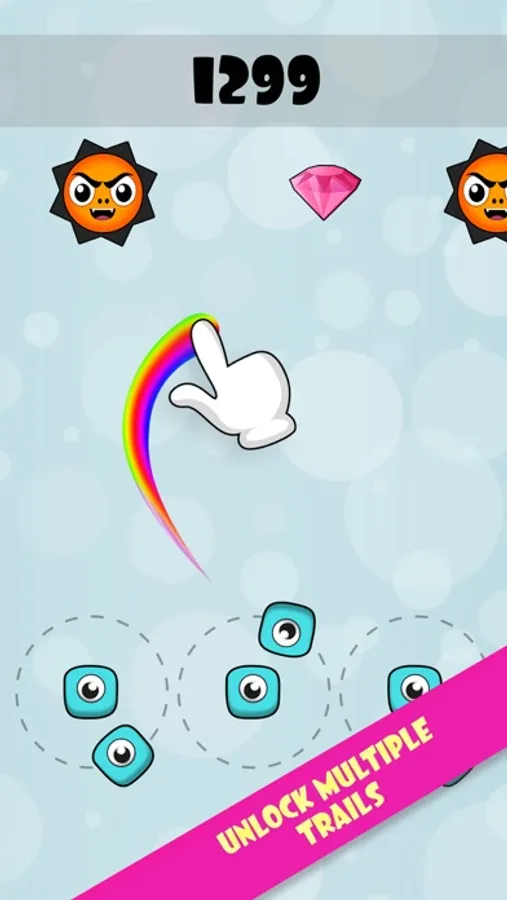 Protect your fingers from the monsters by hold but don’t lift your fingers. Just keep your finger on the screen and see the magic! Hungry Monsters will start coming towards you, protect your finger from them. Fast fingers will win more points!A bubble of additional interest is gained through collecting diamonds and upgrading trails.