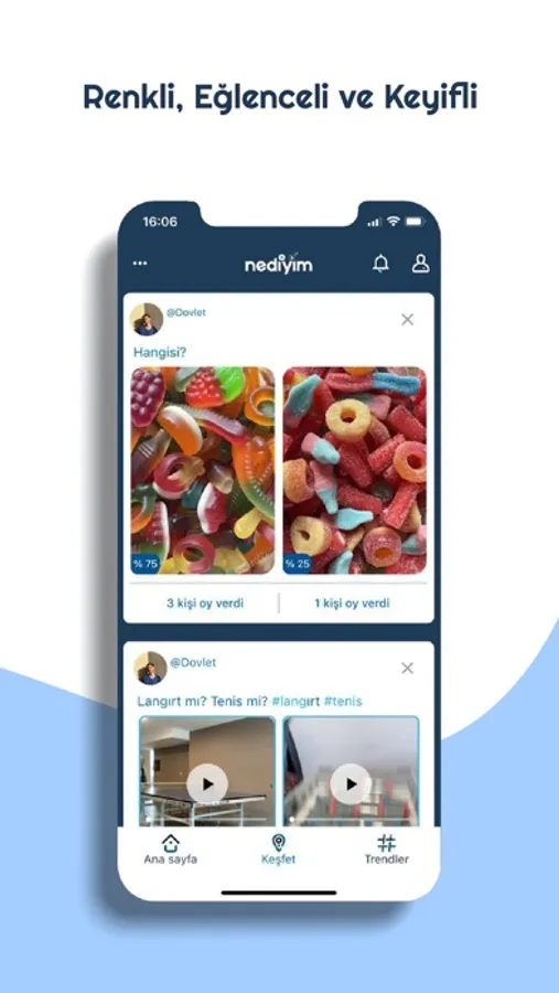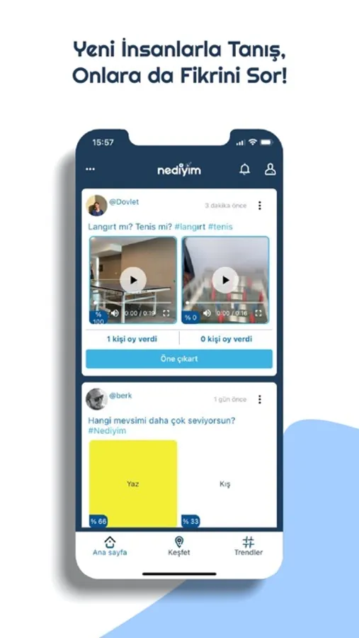 -Keşfet bölümünden NeDiyim? ‘deki diğer kişilerin açtığı anketleri görün ve oy verin.