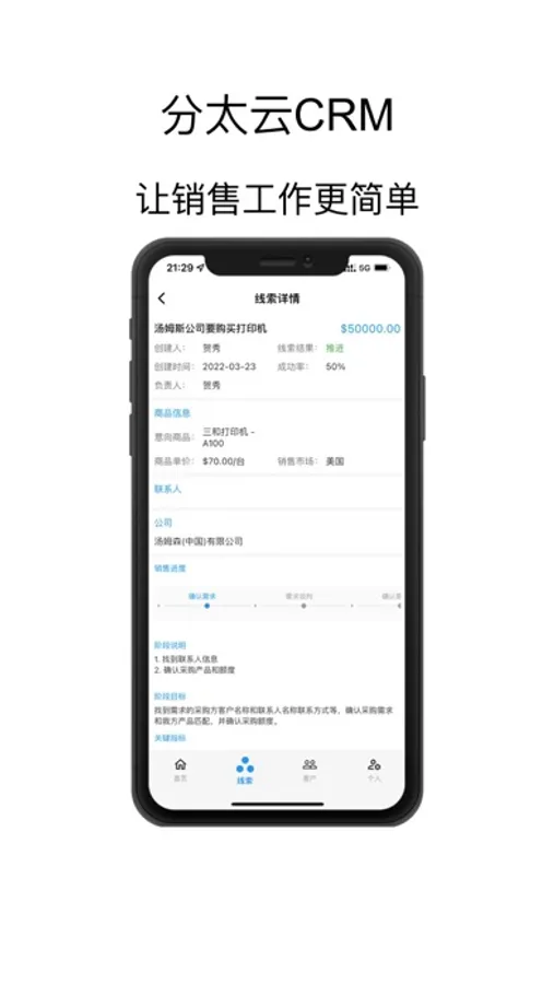分太云CRM聚焦企业的销售过程管理。企业可以轻松在分太云CRM上自定义销售流程,在每个销售阶段中明确团队成员所需要处理的任务,以此来规范企业内部的销售行为。从而以极低的成本投入换取销售管理效率和销售业绩的双幅提升。