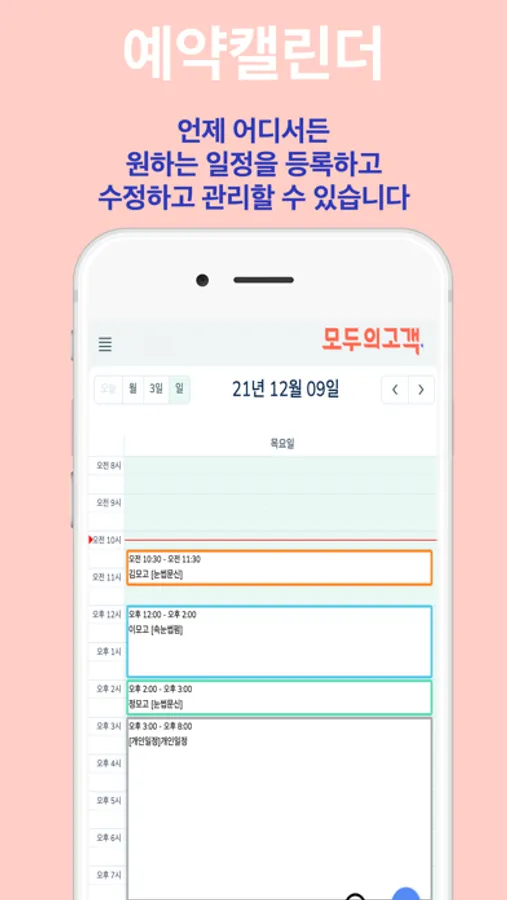 예약정보가아닌 개인일정정보를 기입할 수 있습니다.