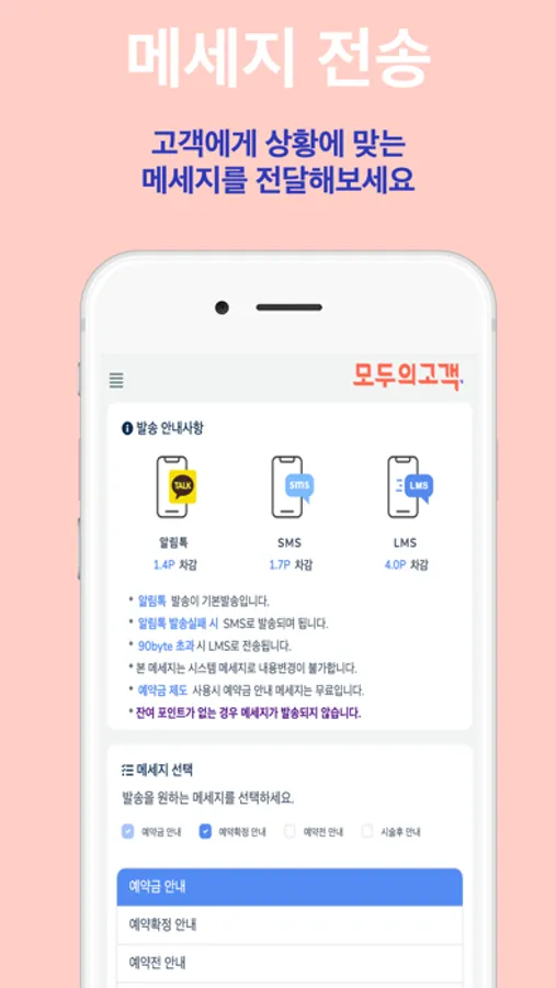상황에 맞는 메세지를 고객에게 전달 할 수 있습니다.