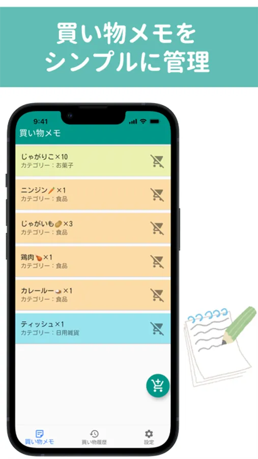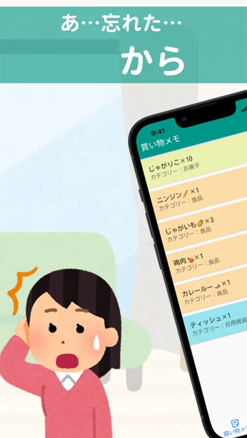 商品カテゴリーごとに整理できる、シンプルな買い物向けのメモアプリです。