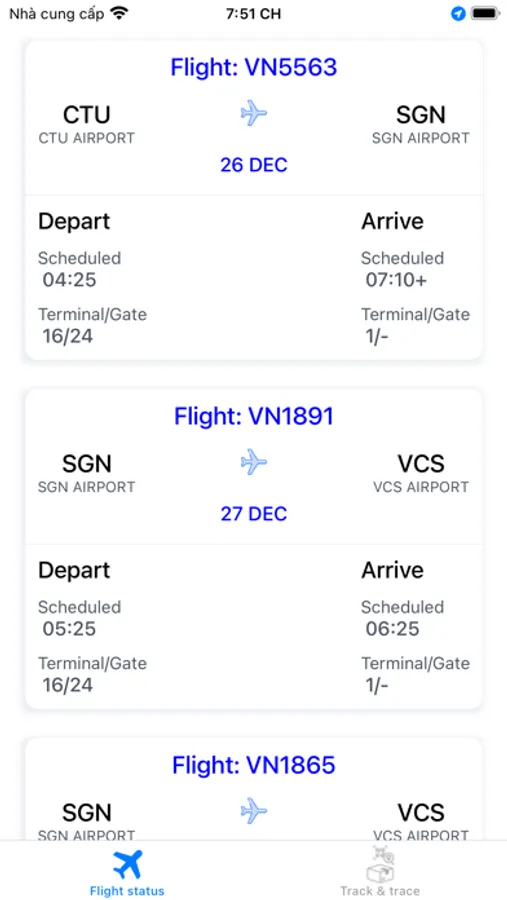 - Xem Tình trạng chuyến bay, theo dõi hành lý ký gửi.