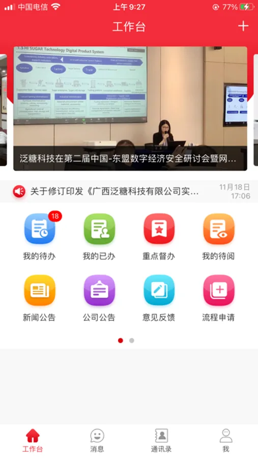 统一门户单点登录:采用CAS+session技术,以高频操作的办公云门户作为单点登录的统一门户,可在界面上实现对内部所有系统的访问,通过不同角色权限的控制,一个账号一个密码即可实现多系统间无缝跳转。