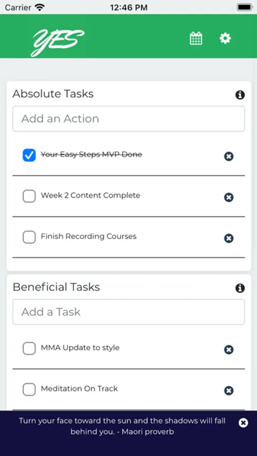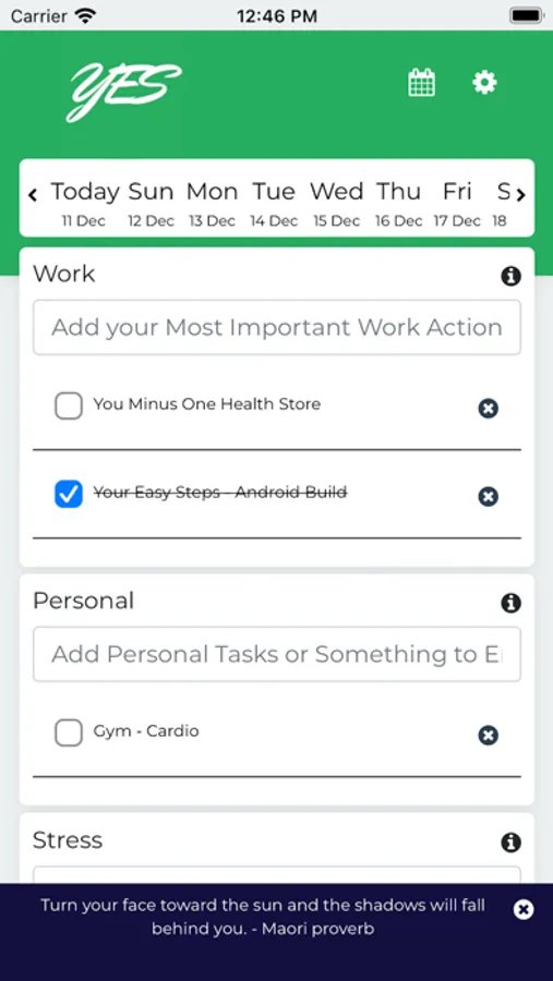 We don't believe in adding more than 3 items per section, any more is generally unfocused (although there are THOSE days still sadly). We don't limit you though. We also don't believe in intrusive notifications. We want you to focus.