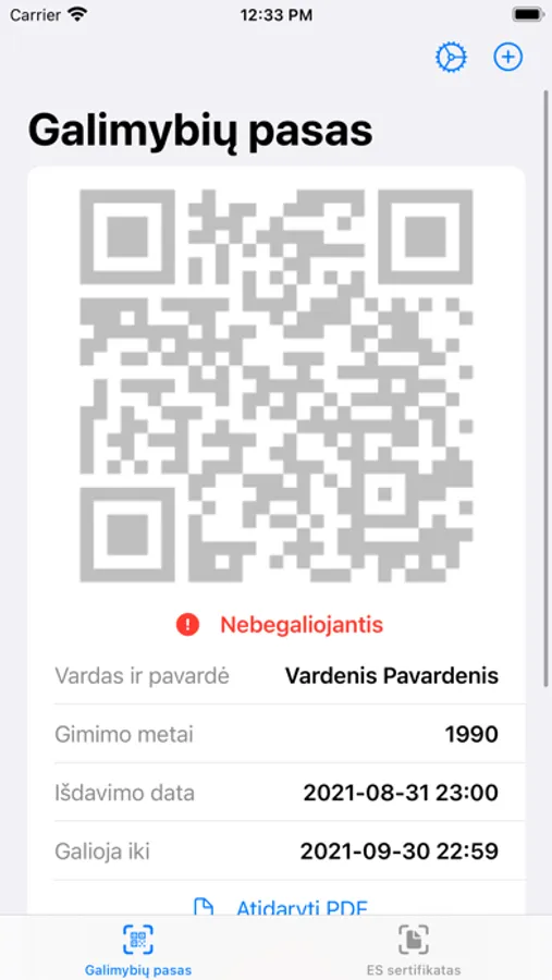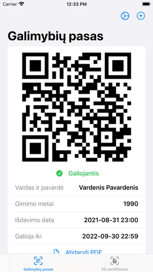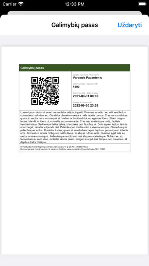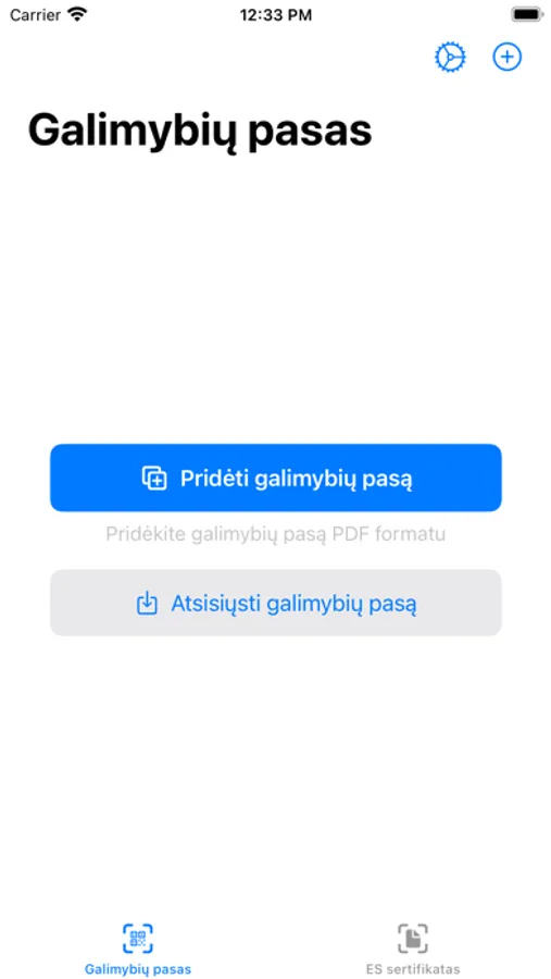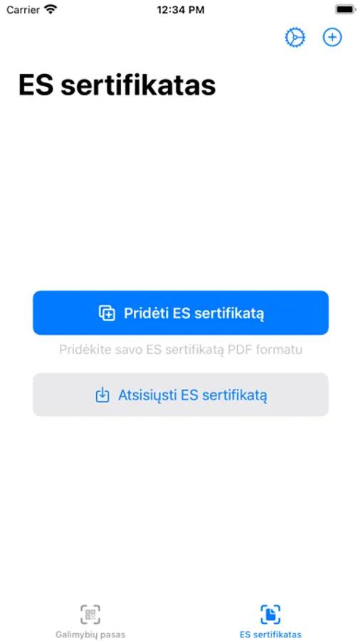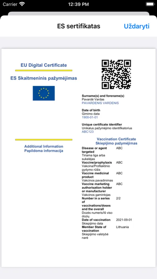 Please also note that in order to use this app you must have an original officially issued Lithuanian national certificate or EU certificate in PDF format.