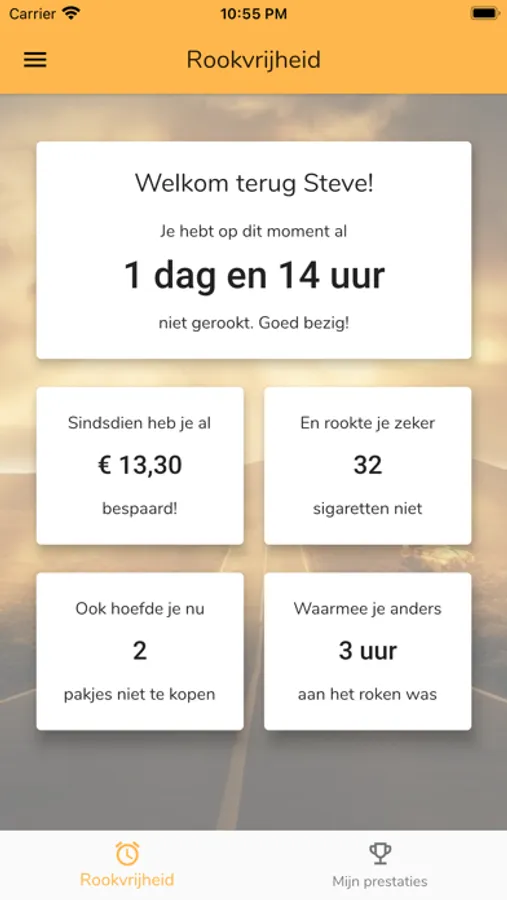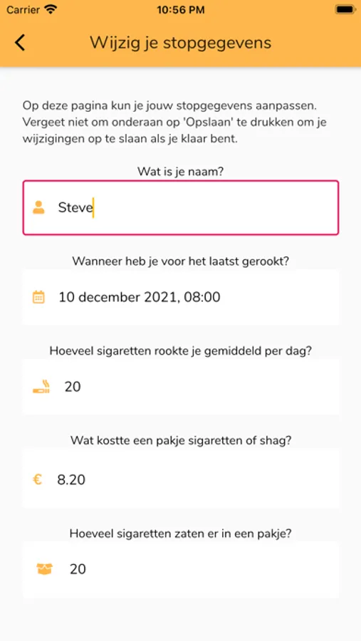 Aan de hand van de door jou opgegeven rookgewoonte, rekent deze app voortdurend allemaal leuke statistiekjes voor je uit: