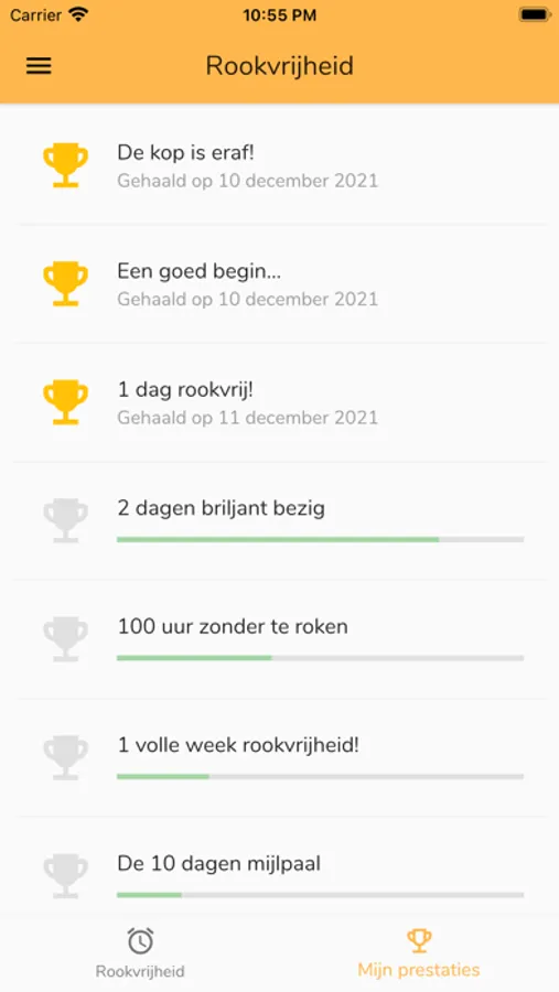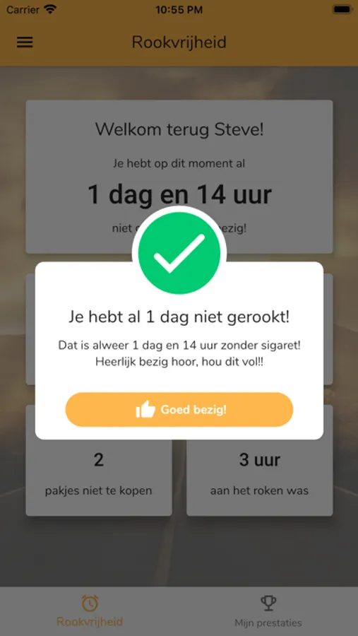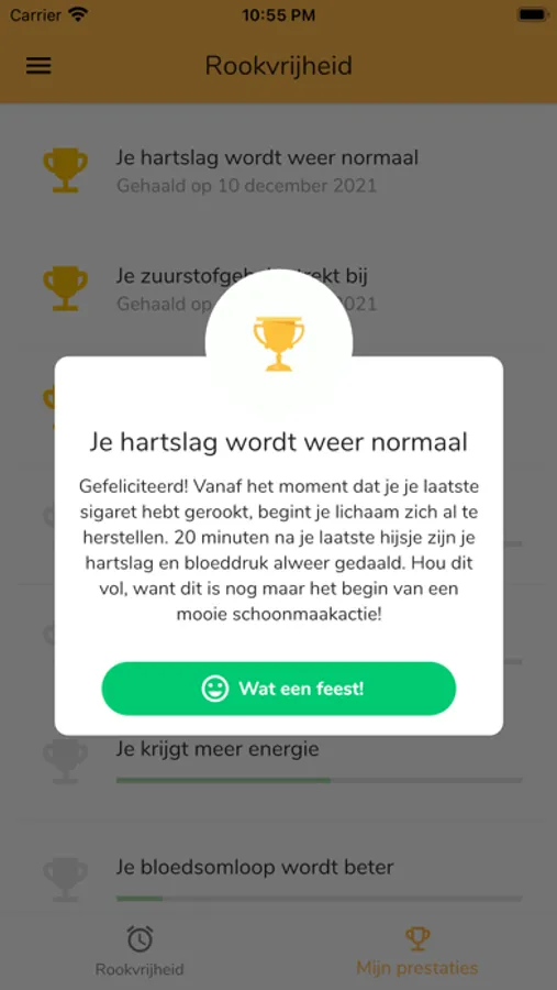 Etcetera, en wanneer je prestaties vrijspeelt voor je mooie mijlpalen krijg je iedere keer een bemoedigende felicitatie. Leuk toch?