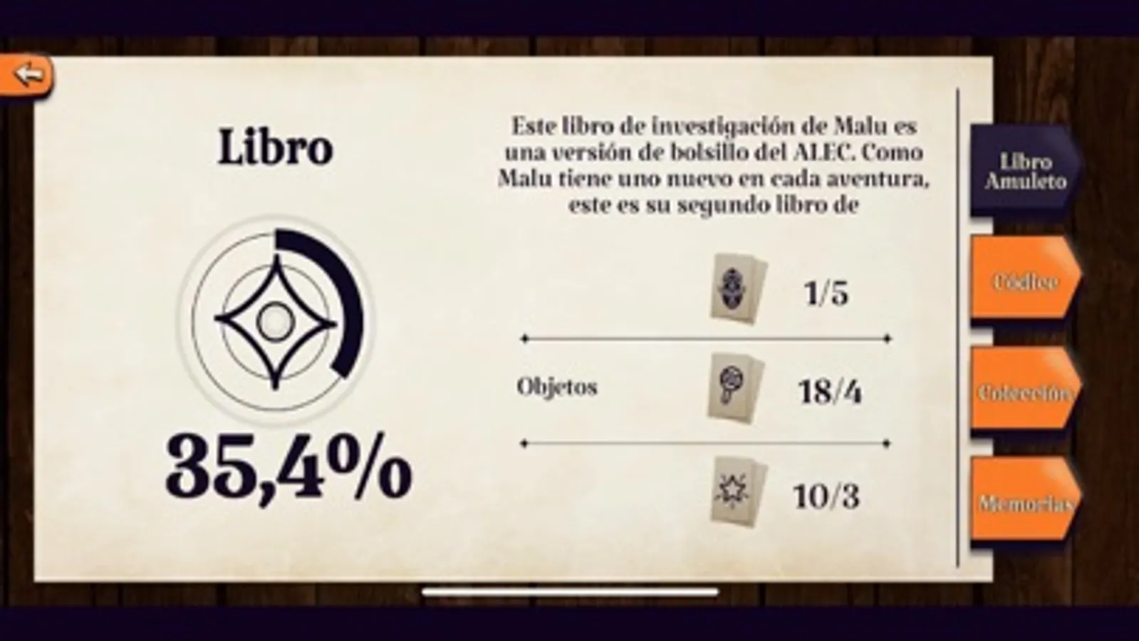 El Libro Amuleto se inspira en el ALEC; Mara Malu es su libro de conocimiento y diario de investigación. Este tiene cuatro secciones en las que se podrá observar el avance de los niveles, el códice donde se guardaran los diez objetos, los coleccionables y las insignias.