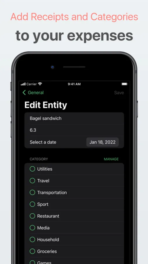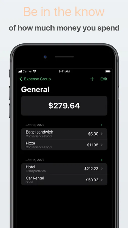 Track your money across different lists and categories, to make it easy to know where your money goes.
