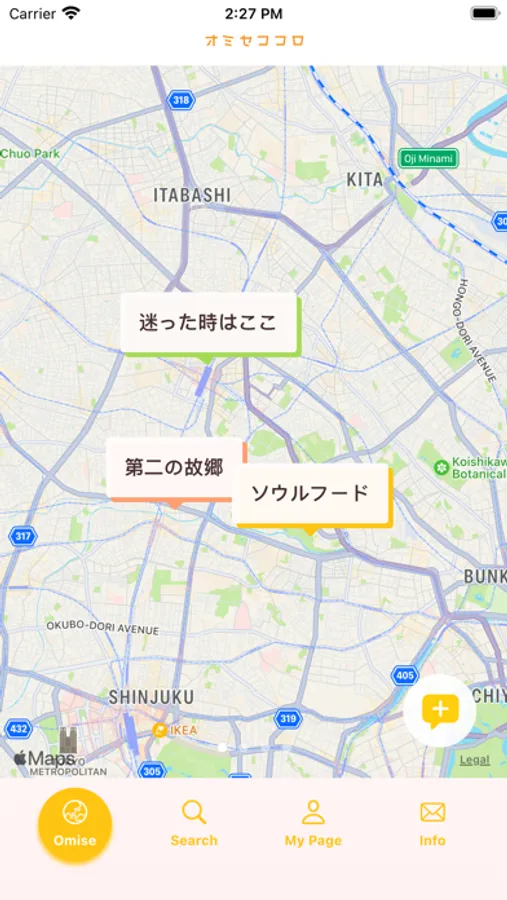 オミセココロは地図をベースにした新しいコンセプトのSNSです。