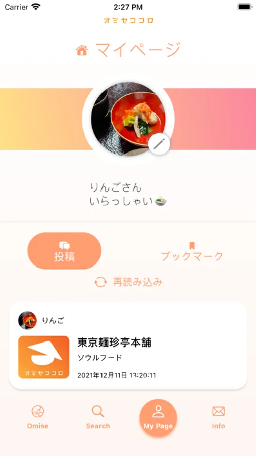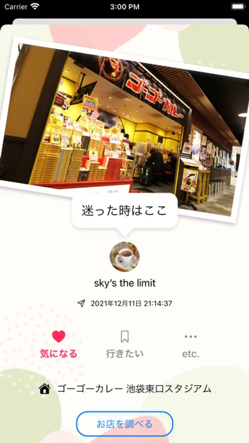 地図から吹き出しをタップすると投稿とお店の詳細を見たり、他ユーザーにリアクションを送ることができます。