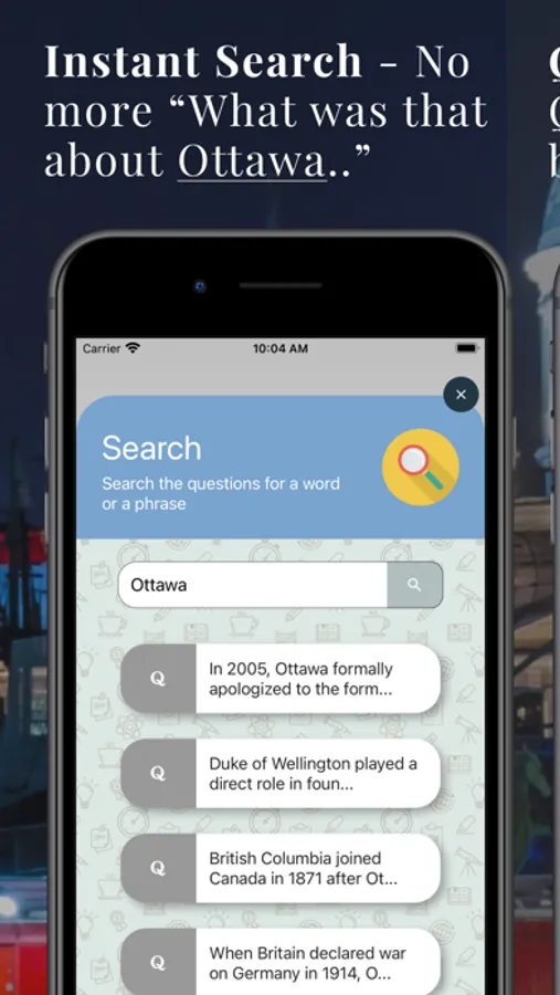- Exclusive instant search - Type “Parliament” and get all the questions about the Parliament. No more “What was that question about...”.