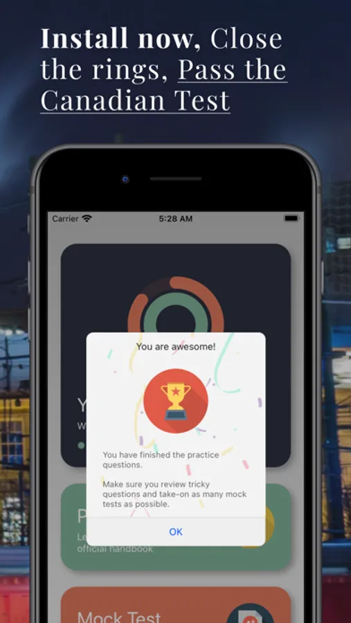 - Exclusive progress meter - Close the rings and we guarantee you will pass your Canadian Citizenship test. It is so simple - Install the app, close the rings, pass the test.