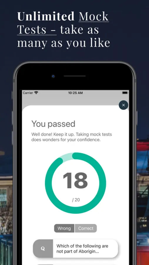 - Unlimited mock tests - Take the mock tests as many times as you like. We will track your scores. When the rings close, book the actual test!