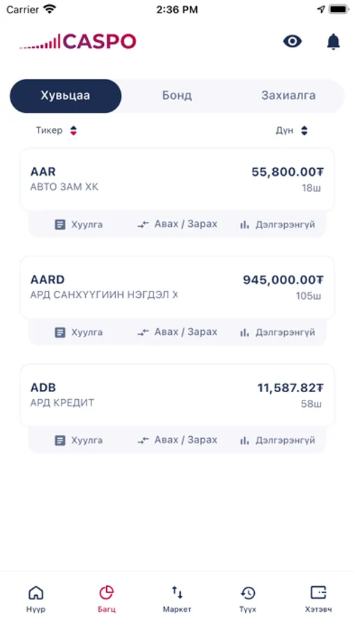 Caspo апп нь хөрөнгө оруулалтын багцаа удирдах, монголын хөрөнгийн биржийн бүх үнэт цаасыг арилжих боломжийг танд олгоно.