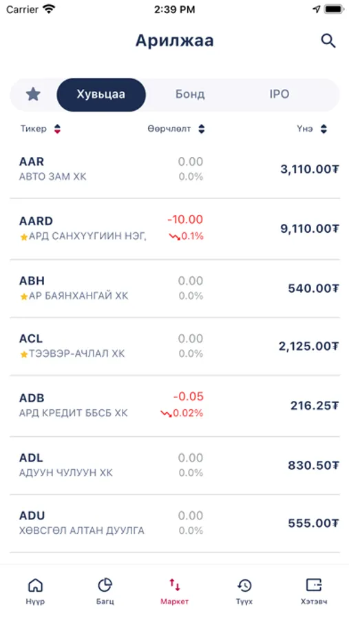 - Үнэт цаас авах, худалдан авсан хувьцаагаа арилжах