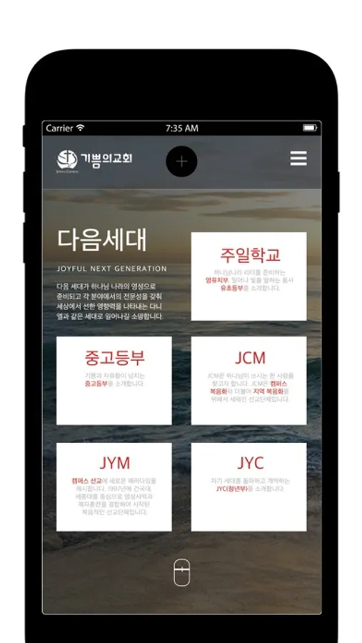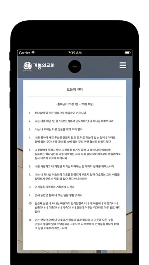 이 앱은 주일 말씀과 큐티, 교회 소식, 교적 인증 등을 핸드폰을 통해 보다 편리하게 접속하도록 제작되었습니다.