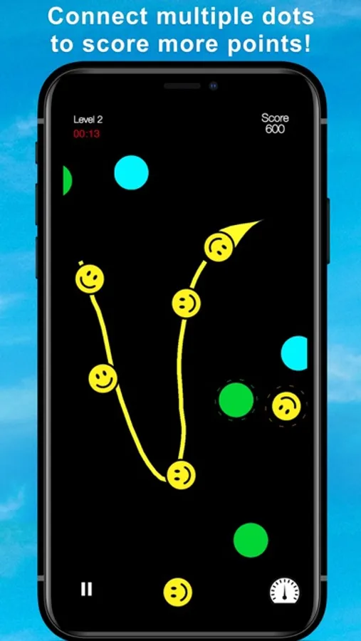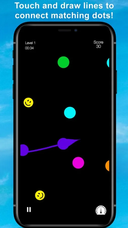 Touch dots and drag finger on screen to draw lines connecting matching color dots, connect multiple dots to score more points! Collect "Happy Faces" to also score points and earn bonus badges! Use the speedometer to activate slow motion when in a jam or tight position.