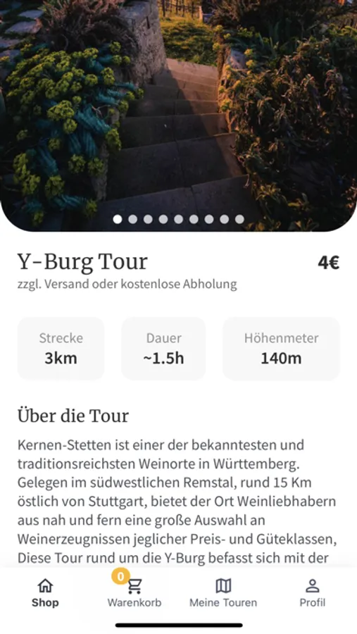 Um die Tour abzurunden, stellt Dir ein/eine lokaler Winzer/Winzerin deiner Wahl die von Dir ausgewählten Weine im Detail vor. Für die Weinverkostung haben die Winzer/Winzerinnen persönlich ein Video für Dich aufgenommen, in dem sie alle Informationen zu ihrem Wein mit Dir teilen. In unserem Onlineshop findest Du die angebotenen Touren und die Weine der Winzer/Winzerinnen. Dort kannst Du die Weine bestellen und somit erhältst Du und deine Familie, Freunde/Freundinnen oder Kollegen/Kolleginnen die Zugangsdaten und ihr könnt die Tour starten, wann ihr möchtet.