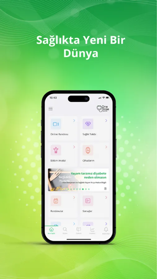 One Dose Health bir uzaktan sağlık bilgi sistemi ve sağlık hizmeti sunucusudur. Bu uygulama sayesinde zaman ve mekan sınırı olmadan sağlık uzmanınızdan randevu alabilir, çevirmen talep edebilir ve görüntülü görüşebilirsiniz. Türkiye ve Dünya'nın her yerinden alanında uzman doktorlara kolayca ulaşabilirsiniz.Tetkik sonuçlarınızı görüntüleyebilir ve dosya paylaşabilirsiniz. Bölüm analizi ile semptomplarınızı seçerek hangi departmana randevu oluşturacağınız önerisine göz atabilirsiniz. Hatırlatıcılar düzenleyebilir, sizin için doğru tıbbi içeriklere ulaşabilirsiniz. Kişiselleştirilmiş sağlık takibi özelliği kronik hastalığınızı yönetmenize yardımcı olur. Uygulama entegrasyonlu cihazlarımızla tek bir uygulama üzerinden ölçüm değerlerinizi anlık olarak doktorunuzla paylaşabilirsiniz. Mesajlaşma özelliği ile sağlık koçunuzla 7/24 iletişimde kalabilirsiniz. Uygulama içerisinden istek ve önerilerinizi iletebilirsiniz.