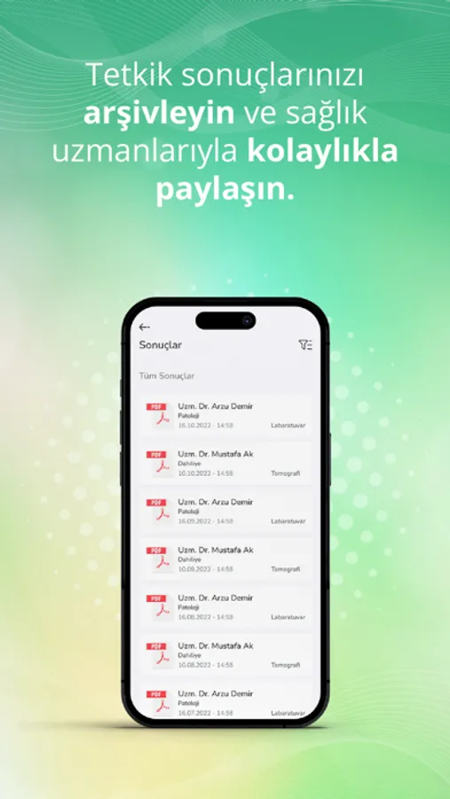Online ve hastane randevusu oluşturup, randevularınızı takip edebilirsiniz. Sonuçlarınızı görüntüleyebilirsiniz. Uzmanlar eşliğinde sağlık takibinizi gerçekleştirebilirsiniz.