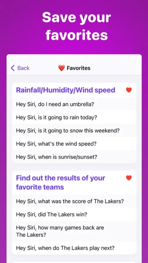 Save your favorite commands to a separate list so you can look them up instantly, at any time (requires the one-time Pro purchase).