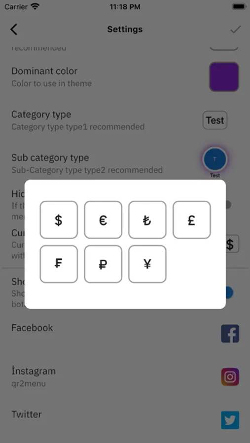 Social media accounts (Customers visiting the menu can check your social media accounts)