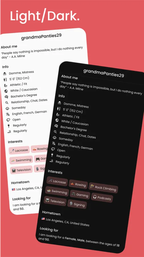 Do not be afraid, take the initiative, everything is in your hands! New acquaintances, communication, online dating, flirtation, serious relationships, and love. Just sign up and find your date! As one of the most efficient and easy to use date finders, this online local dating app enables you to get suitable matches that are interested in bondage, DDLG, and other kinks or interests instantly after showing some activity on the app.
