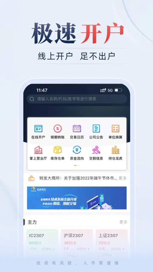1、极速开户:网上3分钟即可免费开通期货账户,无需排队,方便快捷。