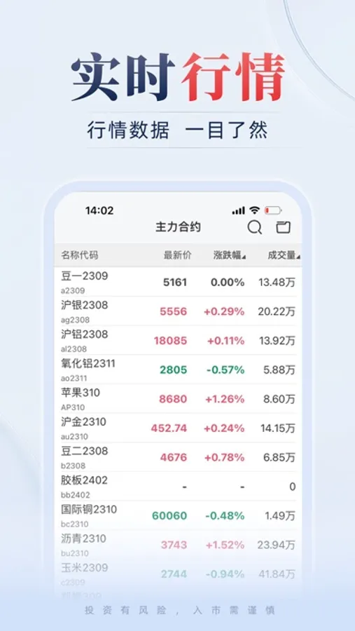 3、实时行情:实时更新期货行情,多种分析周期及技术指标,期货品种全覆盖。
