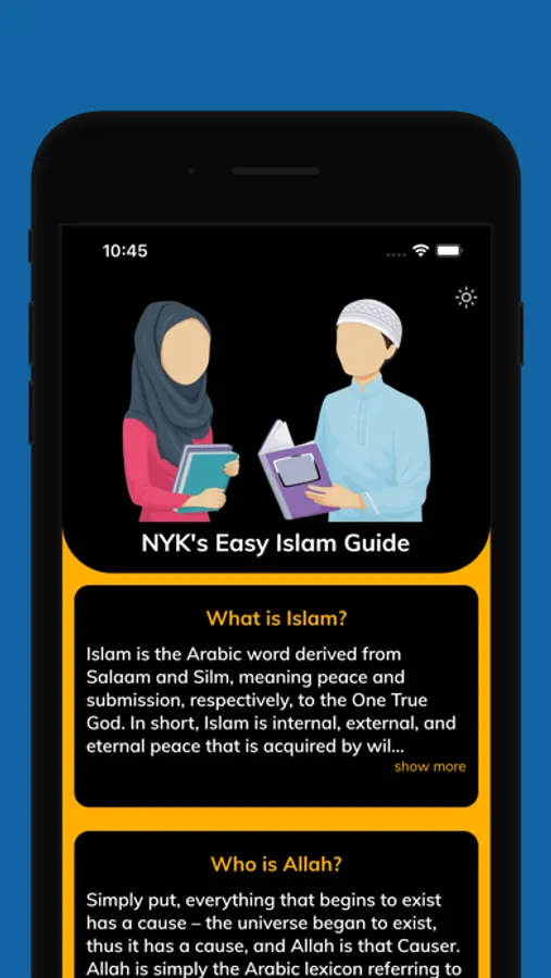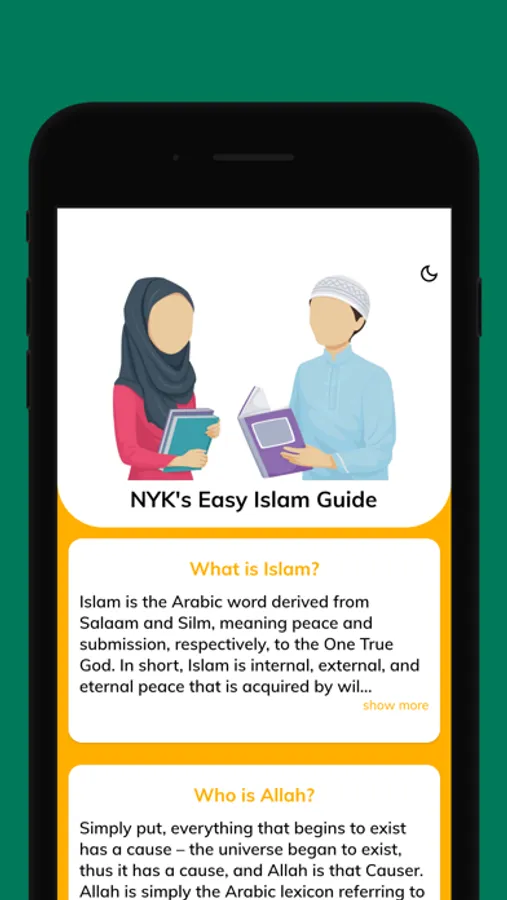 Easy Islam is a comprehensive yet beginner friendly guide for new Muslims. In it users will find explanations to common questions about fundamental Islamic beliefs and practices like :-