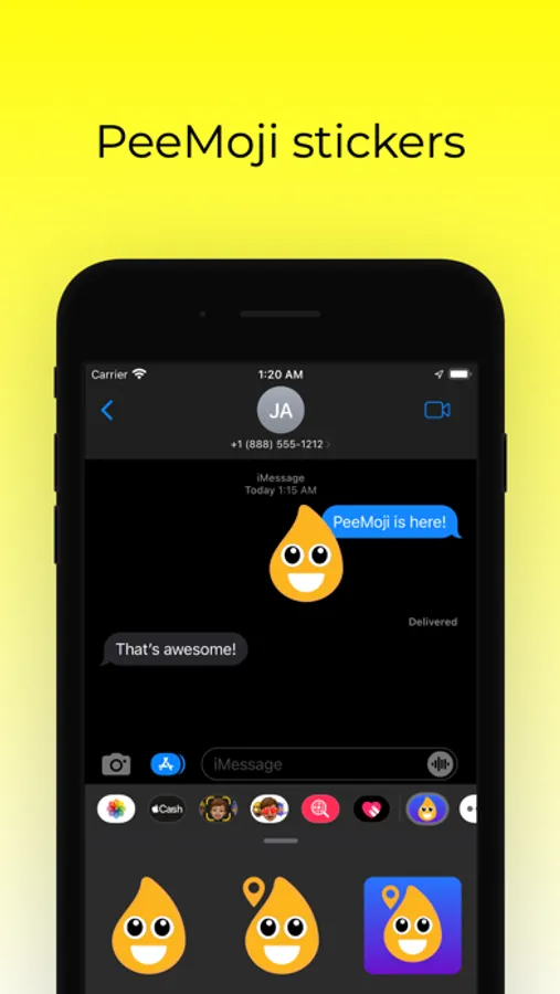 - Send and receive PeeMoji stickers to your friends on iMessage and WhatsApp