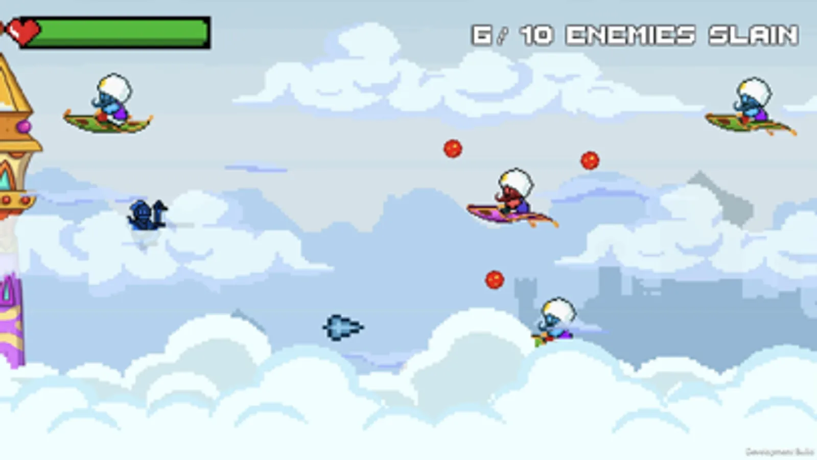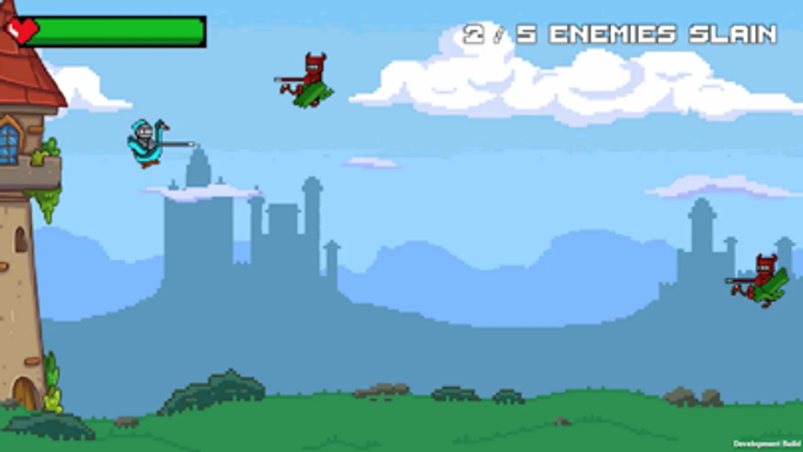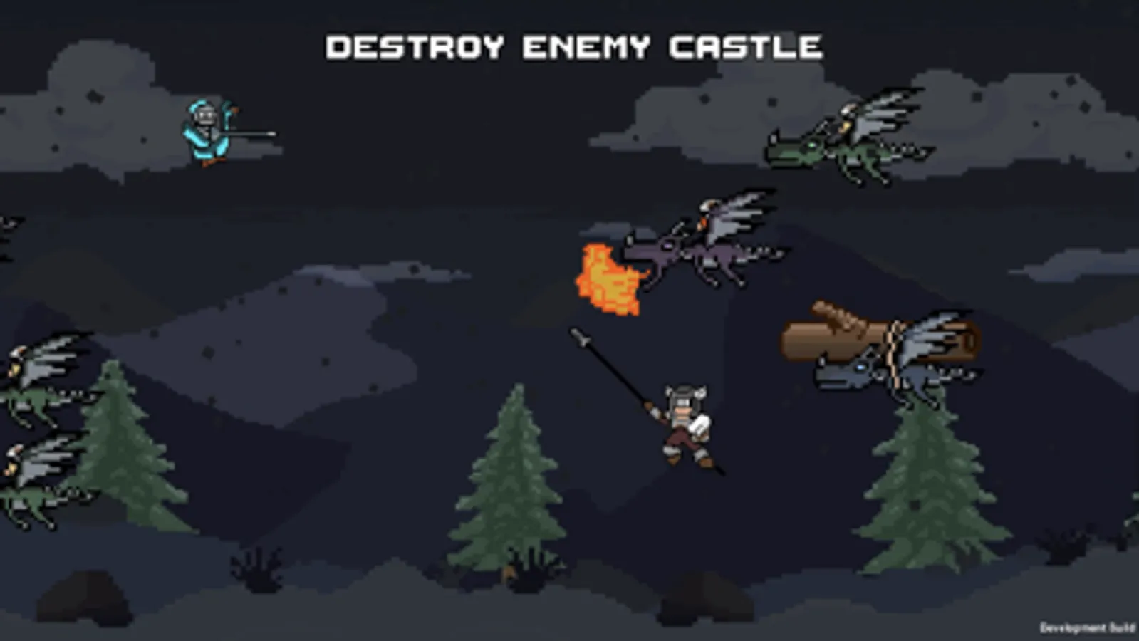 Fly through the air in this retro-inspired adventure with mechanics based on the classic arcade games Joust and Space Invaders. Defend your castle from the enemy knights until it's your time to turn the tables on them.