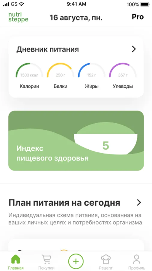 - Сбалансированный план здорового питания. Приложение при регистрации просит заполнить Ваши данные такие, как физиологические особенности и цели, благодаря ним оно составляет сбалансированное и оптимальное потребление калорий, белков, жиров и углеводов и составит вам простые пп рецепты на каждый день или неделю.