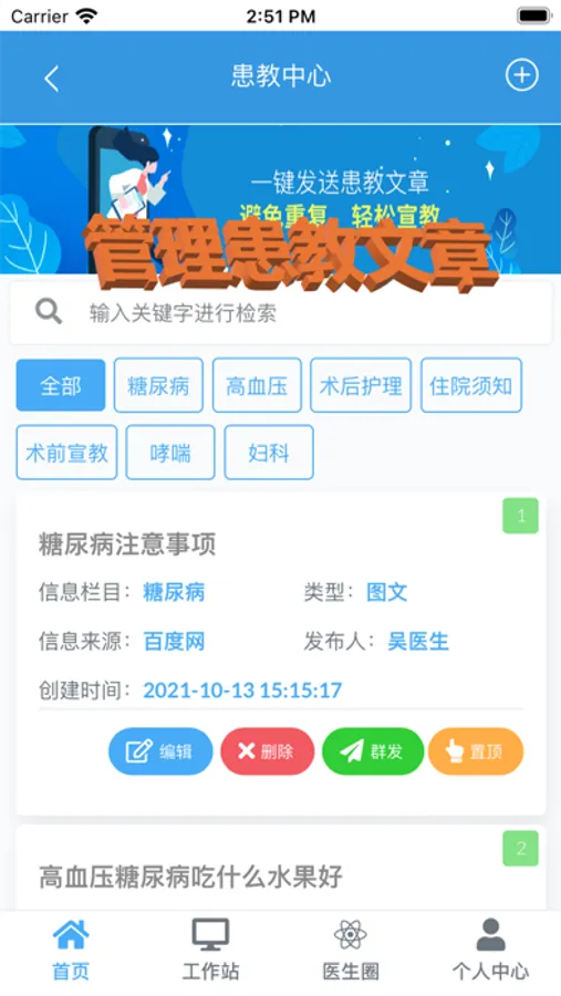 医生可以管理自己的慢病患者,进行在线交流,下医嘱,对患者的病情变化进行统计分析,可以进行科研分析,实现临床与科研一体化的智慧医院目标。