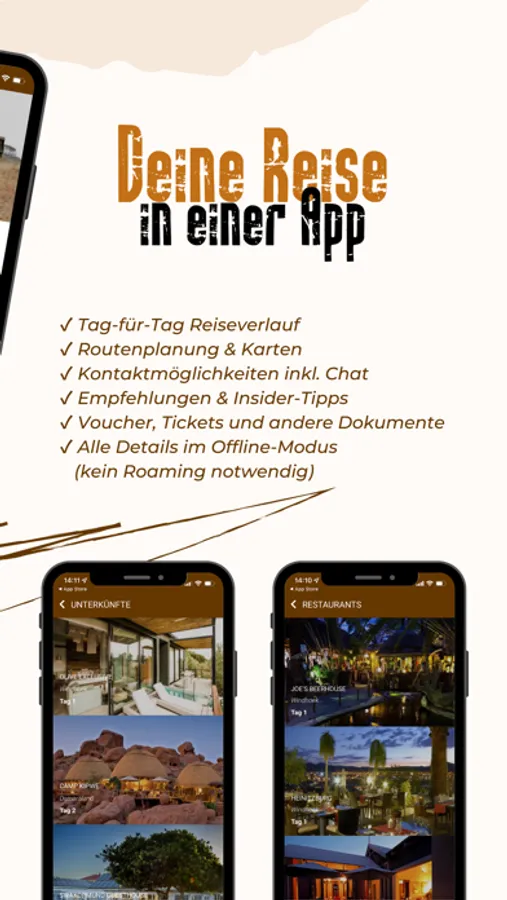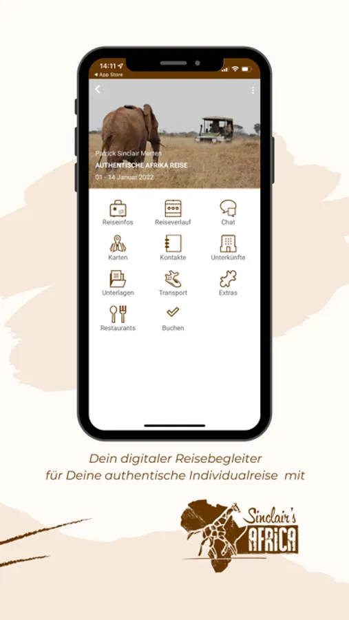 Bei uns erhältst Du Deine gesamte Reise in unserer Afrika-Reise App: vom Angebot über die Buchungsbestätigung bis zu den Reiseunterlagen & Vouchern – modern, digital, nachhaltig.
