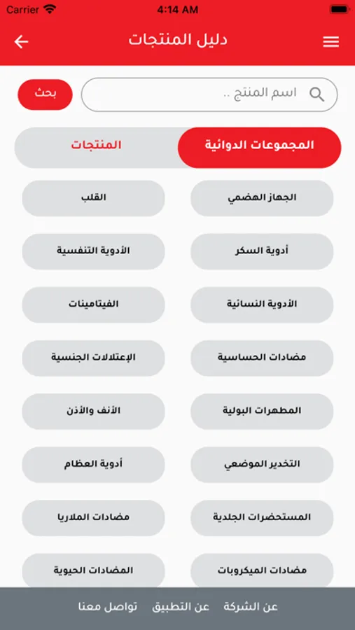 يعرض التطبيق بيانات الأدوية وكذلك تصنيفاتها