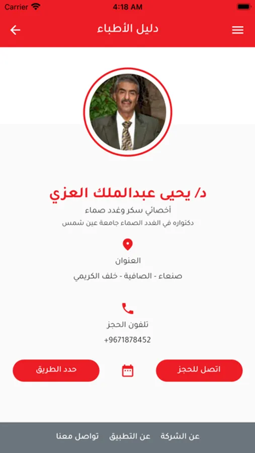 يعرض بيانات الأطباء من تخصصات وشهادات وكذلك مواقعهم على الخريطة وطرق الإتصال بهم