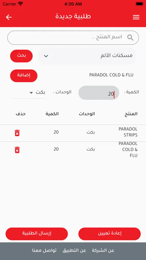 يعرض التطبيق منتجات الشركة من الأدوية للعملاء , وكذلك السماح بتسجيل الدخول للعملاء وإضافة طلبية وإرسالها لكي يتم تجهيزها للعميل وإرسالها