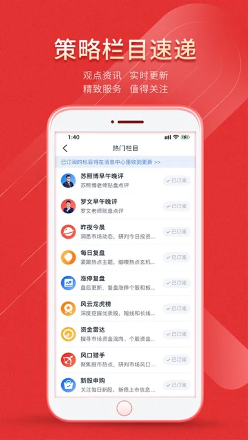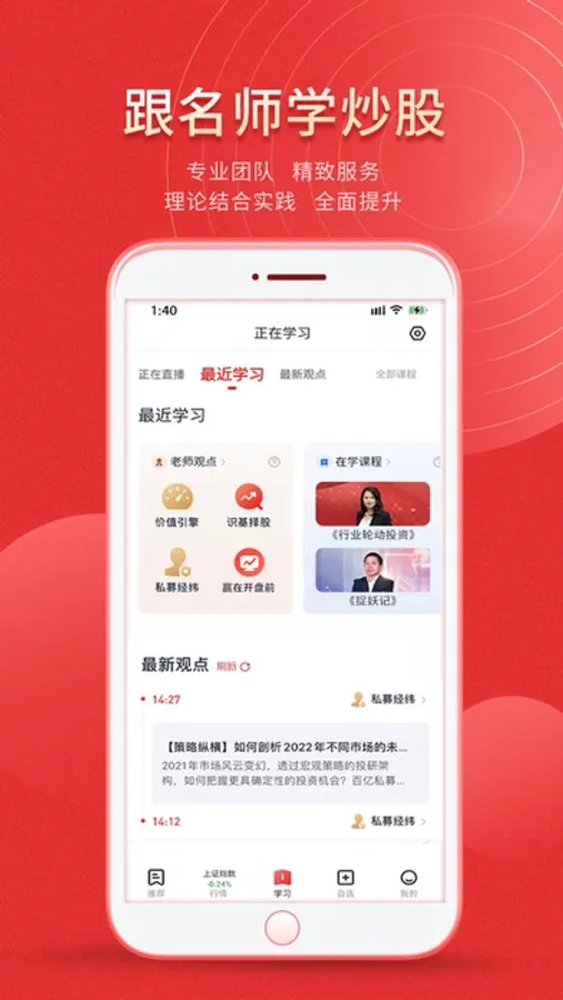 【专业投教】聚集多位名师大咖倾力打造专业的课程体系,为用户提供专业的投教服务,我们课程体系提供系列课程、文字直播、老师观点、股票策略等丰富的服务内容。