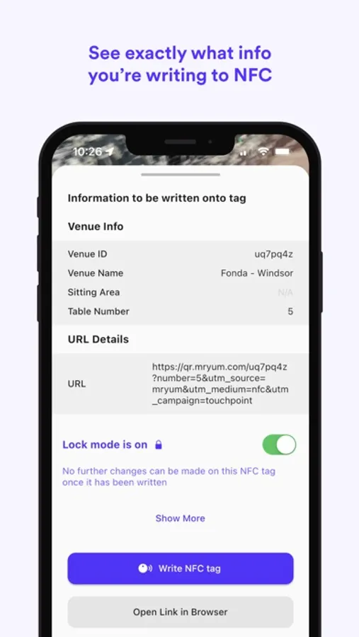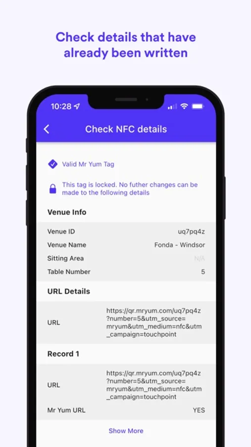 · Your Mr Yum URL is then written to the NFC tag inside the disc, including the table number or area.