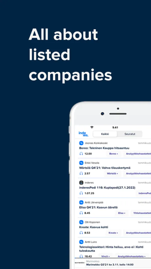 • Browse Inderes programs and content from over 150 Finnish listed companies