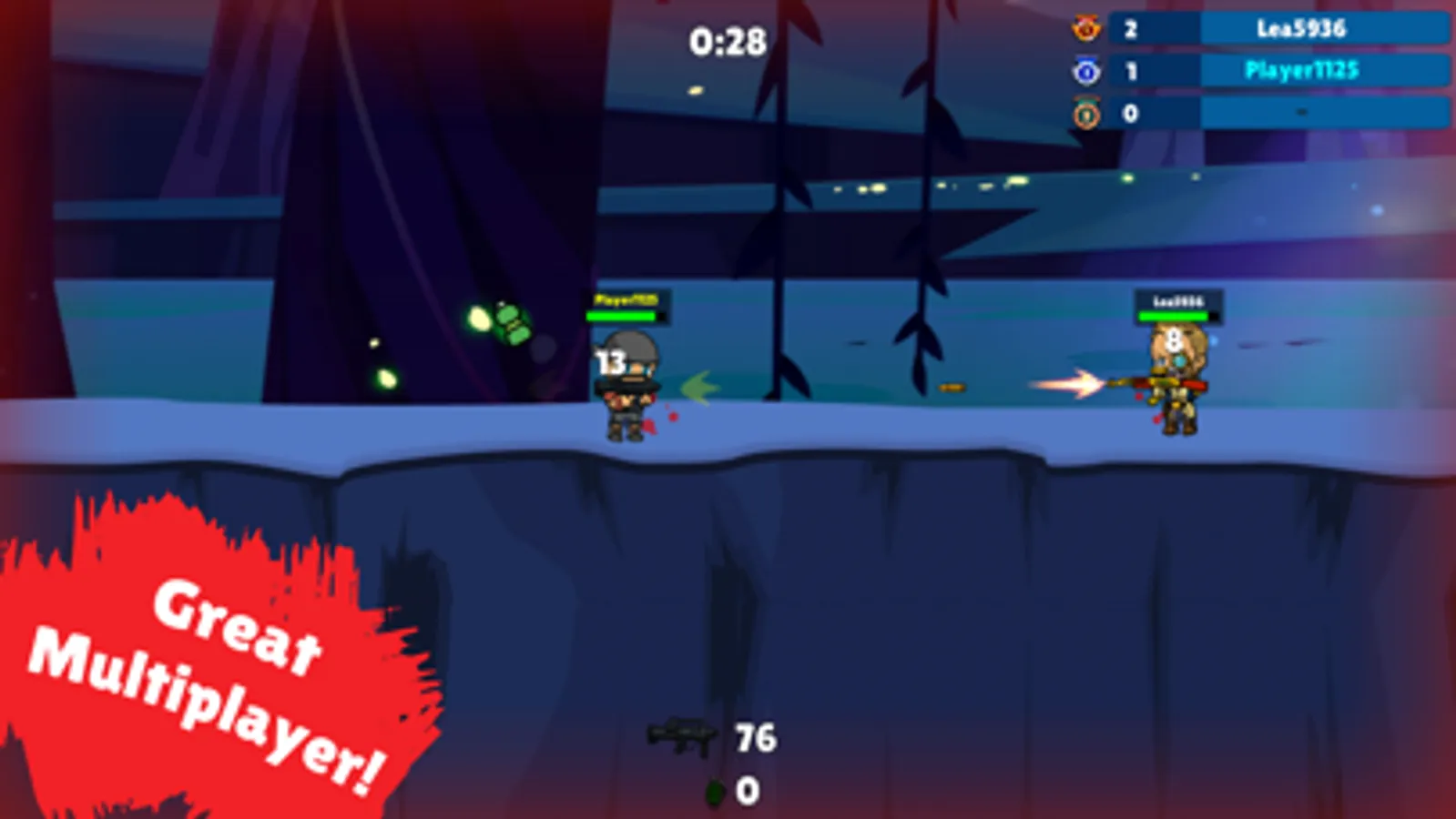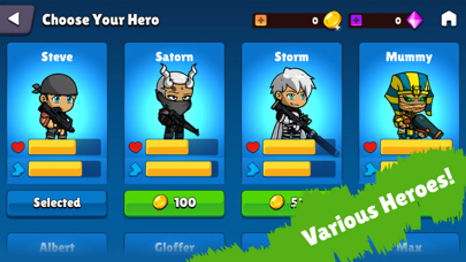 - Characters has their own movement speed, jump force and health points. Different game style from hero to hero.